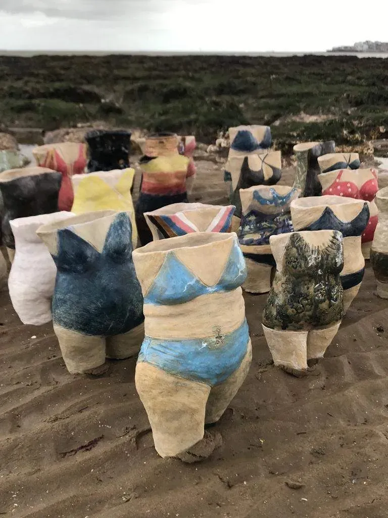 The Mermaid Army is a collection of hand built stoneware sculptures representing the diversity of People Who Swim, celebrating and promoting why they swim and where they swim. The collection was exhibited in Westbrook, Bridlington, Cliftonville, Ramsgate, Weston-Super-Mare and at Turner Contemporary Margate. It was also featured on the BBC South East News.